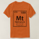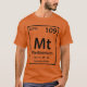 Um design Meitnerium. Meitnerium é um elemento químico com o símbolo Mt e o número atômico 109. Trata-se de um elemento sintético extremamente radioativo (um elemento não encontrado na natureza que pode ser criado em laboratório). O isótopo mais estável conhecido, meitnerium-278, tem meia-vida de 7,6 segundos. A estética geral do design é nítida e minimalista, com foco na simplicidade e elegância. O uso do branco como a cor primária dá ao design uma aparência limpa e fresca, enquanto a fonte e o círculo negros em negrito adicionam contraste e profundidade. É um design versátil que pode ser vestido por homens e mulheres. É perfeito para aqueles que apreciam ciência, tecnologia e inovação, e que querem expressar sua paixão por esses campos através de suas roupas. Vestido casualmente ou vestido, este design deve fazer uma declaração e provocar uma conversa.