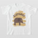 The design features a charming cartoon-style illustration of an elephant, rendered in warm brown tones. Its large, expressive eyes and wide ears give it a friendly and approachable character. The elephant’s trunk gracefully curves downward, adding movement to the composition. Behind it is a yellow brushstroke-like backdrop, which adds a splash of playfulness and contrast. Above the elephant, the word “ELEPHANT” is displayed in bold, all-caps brown lettering that complements the character’s color and feel.