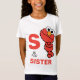 Esta camisa fofa das garotas da Sesame Street apresenta Elmo e o texto, "S é para a Irmã." © 2020 Sesame Workshop. www.sesamestreet.org