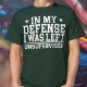 Camiseta Em Minha Defesa, Eu Fiquei Sem Supervisão Sarcasmo