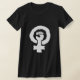 O símbolo fêmea universal combinou com a mão da solidariedade no texto preto no tshirt branco