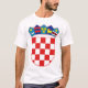 Casaco de armas da Croácia. O casaco de armas da Croácia consiste num escudo principal e cinco escudos menores que formam uma coroa sobre o escudo principal. O casaco de armas principal é um tabuleiro de xadrez (cheque) que consiste em 13 campos vermelhos e 12 prateados (brancos). É comumente conhecida como šahovnica ("chessboard", de šah, "xadrez" em croata) ou grb (literalmente casaco de braços). Os cinco escudos mais pequenos representam cinco regiões históricas diferentes dentro da Croácia.