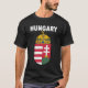 Iconic Hungary national emblem design com um casaco de braços coroado com um escudo listrado verde-vermelho e um ouro duplo em cima.
