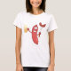 Uma salsicha engraçada segurando um copo grande de cerveja. Esta design parece muito eficaz nesta Camiseta das Mulheres