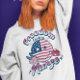 Elevem seu estilo com nossa camisola 'Enfermeira Adorável à Liberdade', com cores patrióticas vibrantes e um sinal de paz, design. Mostre o seu amor pela liberdade e pela saúde de uma maneira moderna e confortável.
