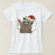 Um design de Natal engraçado de guaxinim giro enfiado em luzes de Natal.