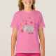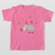 A camiseta desta menina mostra uma ilustração de uma linda e engraçada caricatura de cartoon de cartoon de cartoon de ovelha vestindo chapéu de aniversário, segurando a flor vermelha e cercada por borboletas. presente de excelente para o aniversário!