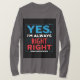 Uma design de professor de matemática divertida e ousada com a frase "SIM. ESTOU SEMPRE CERTO - PROFESSOR DE MATEMÁTICA ENGRAÇADO" em tipografia azul, branca e vermelha vibrante. Perfeito para educadores que querem mostrar seu amor pela matemática e pelo humor. Ideal para T-shirts, canecas e acessórios escolares.