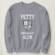 Camisa do Alum da Petty University, quando você usou aqueles quatro anos de matrícula para formando com um grau menor e gosta de vestir a crista da faculdade com orgulho. Um pouco de humor engraçado, sarcástico, irreverente, para alguém que gosta de tomar chá quente e que consegue guardar rancor.
