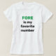 Qualquer amante de golfe vai gostar dessa camiseta engraçada e fofa. O texto da citação de golfe é "FORE é o meu número favorito". FORE está em verde.