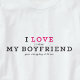 Engraçado eu adoro minha camisa de Namorado para mulheres. Uma citação humorística em uma cinza escura e cor de fúcsia rosa-quente. Na moda e diversão, este é um presente perfeito para o seu outro significativo. Faz um maravilhoso presente de aniversário ou dia de os namorados que colocará um sorriso em seu rosto.
