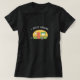 Engraçado, a camisa escura das mulheres tem um texto personalizável "Eu durmo ao redor" com um trailer do acampamento RV em estilo amarelo e verde em fundo verde. Perfeito para aqueles que amam o estilo de vida do acampamento RV em parques de campismo, rv e locais remotos fora da rede - onde estacionar sua plataforma em vários lugares por dias, semanas ou meses é apenas uma forma de viver.