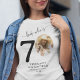 Faça uma declaração em seu dia especial com nossa camiseta de aniversário de 70 anos. Perfeito para a estrela de aniversário ou seus convidados, esta peça divertida e personalizada é imperativa para qualquer celebração. Adorados com elegante caligrafia, seu nome, retrato como parte dos '70', localização, e ano, esta chic tee é uma celebração em si mesma. O vamos aplaude a nova década e torna-a memorável com esta camisa única e na moda.