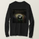 Um gato preto eyed grande com o universo atrás dele, "o universo é um lugar enorme. Eu estou sure contente mim estou aqui com você."