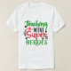 Esta design apresenta uma camiseta branca com a palavra "Ensinando" no topo em verde. Abaixo estão as palavras "MINI" em preto e "Super" em vermelho. A palavra "HEROES" está em verde no fundo. A design inclui gráficos de uma maçã vermelha, um livro e formas de estrelas pretas.
