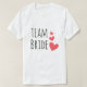 Design incrível com a citação "Equipe da Noiva" e três corações vermelhos. Ótima e divertida ideia de roupa para uma despedida de solteira ou para a festa de casamento.