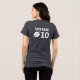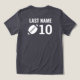 T-Shirt de futebol da Frente e Traseira Personalizada em cinzas escuras. Design apresenta um logotipo na moda redondo com capacete de futebol, estrelas e listras. Personalize com o nome do seu jogador de futebol, número de camisa e sobrenome. Inclui um sotaque de futebol nas costas.