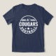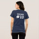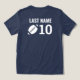 T-Shirt de futebol da Frente e Trás Personalizada - mostrada no Design azul marinho apresenta um logotipo na moda redondo com capacete de futebol, estrelas e listras. Personalize com o nome do seu jogador de futebol, número de camisa e sobrenome. Inclui um sotaque de futebol nas costas.