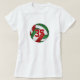 A equipe personalizada de vôlei colore camiseta apresenta um gráfico de vôlei vermelho, verde e branco que tem um padrão caleidoscópico floral feminino misturado com os painéis vermelho e verde do vôlei - seu número de camisa é personalizável - por katz_d_zynes