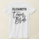Seja uma frente unida nos eventos da sua festa de casamento, desde o chá de panela até a despedida de solteira e mais. Essas camisetas mostrarão seu amor e apoio para a Noiva. Este design apresenta uma tipografia cursiva personalizada com pinceladas com a citação "Team Bride" (Equipe da Noiva), juntamente com um monograma e "Bridesmaid" (Dama de honra) na frente. Será uma maneira fofa, divertida e moderna de mostrar seu orgulho quando estiver com sua noiva!