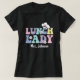 Mostre seu espírito escolar em estilo com esta camiseta personalizável projetada especialmente para as senhoras e membros da equipe de lanchonete da escola. Apresentando a tradicional tipografia retrô-estilo que diz, "Senhora Merendeira", uma paleta de cor pastel macia, um chapéu de chef fofo, e sotaques de flor simples, este design irá adicionar cor e alegria a cada turno de almoço. Personalize este design adicionando um nome no marcador de posição de texto personalizável. Perfeito para dias de apreciação do funcionarios, comemorações de volta à escola, ou vestir casual de cantina, esta camisa fará um presente pensativo para a equipe dedicada de almoço que serve almoços quentes com um sorriso.