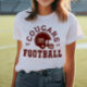 Camisa de futebol da Frente e Traseira Personalizada para a Mãe - mostrada na Design de Branco para mães de futebol mostra um capacete de futebol com texto esportivo que pode ser personalizado para o nome do time, o sobrenome do filho e o seu número de camisa. As cores Douradas e escuras podem ser personalizadas.