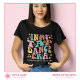 Compartilhe seu amor pela dança de tap com esta camiseta personalizável que apresenta uma tipografia retrô com a frase “In My Tap Dance Era”, acentuada com flores e estrelas fofas, texto personalizável e uma paleta de cores alegre em rosa, verde, amarelo e vermelho. Esta camiseta será um presente único para mães, professoras ou estudantes de dança. Adicione o nome do seu estúdio de dança para criar um presente único e memorável.
