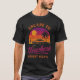 A nostalgic road trip fantasy captured in retro style. Set against a striped sunset in purple, orange, and gold, this bold design features a classic muscle car riding through a lonely desert highway, framed by palms, cactus, and a glowing full moon. For those who crave the freedom of the road and the mystery of the night.