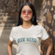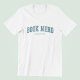 Texto de estilo desportivo para um nerd de livro. Você pode personalizar as cores azul e verde. Professores e estudantes podem escolher suas cores escolares. Manter ou excluir o texto personalizado. Se você transferir este design, poderá centralizar o gráfico vetorial e o modelo de texto para a área impressão.