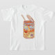 Uma ilustração retrógrada, ao estilo de poster publicitário, de uma lata de espaguete. Esta lata de espaguete tem um personagem de desenho animado bonito. Um design para qualquer um que ama comidas orçamentárias como espaguete em torrada.