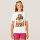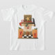 Um espantalho de madeira entre cenouras de madeira. Este design olha realmente eficaz neste t-shirt das meninas