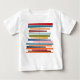 Esta camiseta bebê tem uma design moderna do século médio de linhas coloridas horizontais em uma linha preta vertical com círculos.