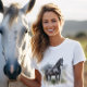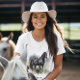 Mostre seu estilo livre com nosso Espírito da Camisa Personalizada do Estalão Selvagem para Ela. Esta bela camisa apresenta um majestoso garanhão preto de aquarela, trazendo uma sensação de arte poderosa e serena para o seu guarda-roupa. Você pode personalizá-lo com um lema criativo como Nascer de ser selvagem, uma frase simples como Meu Lugar Feliz, ou uma declaração ousada como Onde o Espírito Roda.