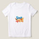 A design de camiseta para "Espíritos do Soar" apresenta uma águia majestosa que sobe através do céu contra um pano de fundo de matizes vibrantes e solares. As asas da águia estão estendidas, simbolizando liberdade e poder. A palavra "Soar" é escrita em negrito, num guião fluente sobre a águia, enquanto "Espíritos" é escrita abaixo numa letra menor e complementar. O design geral transmite uma sensação de inspiração, aspiração e superação dos desafios.
