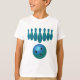 Essa camiseta ousada mostra uma bola de boliche vibrante e pinos gráficos, perfeitos para jovens fãs do jogo. Seja para a prática da liga, festas de aniversário, ou apenas para mostrar seu esporte favorito, esta camiseta traz um estilo divertido e enérgico. Confortável, durável e ideal para qualquer futuro campeão de boliches.