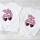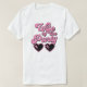Camiseta de festa de solteira engraçada e fofa para a noiva que apresenta "Esposa do Partido" em um retrato rosa quente do estilo 70 e óculos de sol em forma de coração. A camiseta "Life of the Party" correspondente está disponível para o esquadrão de solteiros.