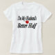 Camisa com que sou melhor metade do meu marido em letras negras 3D. Camisa disponível em vários estilos e cores com mangas longas ou curtas.