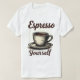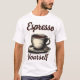 Esta design lúdica e humorística mostra uma ilustração desenhada à mão de uma xícara de café com o texto "Espresso Você Mesmo" escrito acima dela. A design encoraja a autoexpressão e abraça a personalidade única, enquanto celebra a alegria da cultura cafeeira.