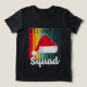 A camiseta da moça festiva Santa Hat, praça de Natal, apresenta um retrô estilizado com o texto "Praça de Natal" em tipografia colorida com um chapéu de Papai Noel no centro. Projetado por feriados do Evco www.zazzle.com/store/evcoholidays