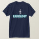 A radiologia incandesce azul brilhante na frente de um esqueleto de espera.