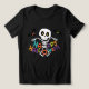 Este design apresenta um esqueleto bonito com dois morcegos ao fundo. O texto "Feliz Dia das Bruxas!" está escrito em um popular texto colorido moderno. #halloween #party #feriados #esqueletreto #moda #estilo