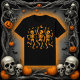Prepare-se para a noite do Dia das Bruxas com esta divertida camiseta dos Skeletons Dançantes! Este design festivo apresenta três esqueletos laranja dançando alegremente, cercados por notas musicais, estrelas e uma lua crescente. É a camisa perfeita para qualquer um que adora celebrar a estação assustadora e bater no salão de dança! Este gráfico divertido e de estilo vintage é excelente para festas de Halloween, truques ou tratamentos, ou apenas entrar no espírito de outubro. Também faz um presente fantástico e engraçado para amigos que amam música, dança ou iconografia clássica do Dia das Bruxas.