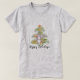 Ilustração de aquarela festiva apresenta um esquilo encantador e árvore de Natal decorada com texto personalizável de "Feliz Feriado"