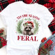 Aproveite esta temporada de férias com a hilária camisa de Natal "'Tis the Season to Be Feral"! Apresentando um guaxinim malicioso em um Papai Noel rodeado de bruxas festivas, esta design suja traz humor e diversão ao seu guarda-roupa de férias. Perfeito para encontros de férias, excursões ocasionais ou como presente lúdico para amantes de os animais. Abrace seu guaxinim interior e espalhe uma alegria de Natal selvagem com esta camisa única e engraçada!