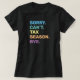 Esta design de camiseta apresenta uma mensagem divertida e relacionável para qualquer um que está passando por uma estação de impostos exigente. Cada linha de texto é apresentada em uma fonte ousada, sans-serif, que é fácil de ler, com as frases "SORRY. Não posso. ESTAÇÃO FISCAL. BYE." empilhado verticalmente para impacto visual. As cores da fonte se alternam entre tons pastéis alegres — azul, verde, amarelo, laranja e roxo — adicionando um toque leve ao tópico de impostos que, de outra forma, seria oneroso. O design minimalista enfatiza a mensagem sem qualquer gráfico adicional, fazer-a uma escolha perfeita para contabilistas, profissionais financeiros, ou qualquer um que esteja sentindo a redução dos prazos fiscais. Esta camiseta é uma maneira bem-humorada de fazer luz sobre o estresse da época fiscal e seria um começo de conversa excelente ou um presente para colegas e amigos da indústria financeira.