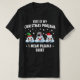 Neve vestindo boneco de neve, Papais noeis e chapéus de elfo, fundo estrelado e texto: "Este é o meu pojama de Natal, quero dizer camisa de pijama".