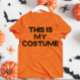 uma camisa de fantasia de halloween, cor de laranja, com um simples texto tipográfico a preto.