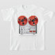 Os Stereos estão longe de como eram. Este design é um estéreo vintage legal. Ele tem duas grandes bobinas de fita no topo. Este design estéreo vintage parece excelente nesta t-shirt das raparigas. Perfeito para si mesmo ou como presente