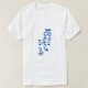 Uma camiseta branca moderna ou cor preta escura (dependendo da preferência), caracterizada por um design simples e elegante no meio, a palavra escrita numa linha moderna distinta em azul marinho ou azul elétrico. A linha carregar um caráter moderno japonês - pode ser inspirada pelas tradicionais linhas japonesas, mas com um toque moderno de engenharia, que dá a impressão de modernidade e cultura. A palavra pode ser escrita em letras inglesas, mas em um estilo que imita a linha japonesa, com efeito de luz de pincel de tinta ou dentro de gradiente de cor, as letras para adicionar profundidade visual. A design pode ser cercada por um círculo simples ou retângulo fino, ou acompanhada por um pequeno símbolo como um sol vermelho (ícone do Japão) ou por uma onda tradicional japonesa abaixo do texto.