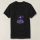 Um T-shorts cor escura (preto, cinza escura ou azul marinho) para realçar claramente as cores. No meio do qual os shorts, há uma imagem artística de uma paisagem de montanha perfeita, onde picos de montanha são cobertos de neve ou com cores naturais formando entre verde, marrom e cinza. Voando sobre as montanhas, uma espaçonave com design futuro, que pode estar na forma de placa ou elegante espaçonave, com luzes de néon (azul ou verde) que dão um senso de fantasia científica e alguns dos raios descendo da espaçonave para as montanhas, como se estivessem explorando ou pesquisando. O design pode estar no estilo de uma pintura realista com toques artísticos que adicione profundidade e dimensões à imagem, ou no estilo de linhas simples com cores diferentes se você quiser uma natureza mais moderna e simples.